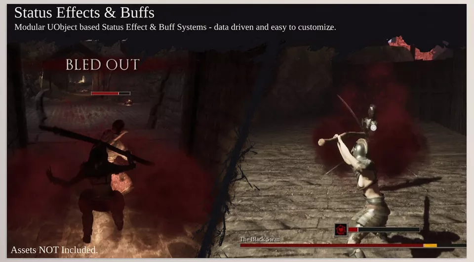 • Combat System & Animations: Modular gameplay options for styles, mechanics through systems, animsets, stances, abilities, poise, and finishers.